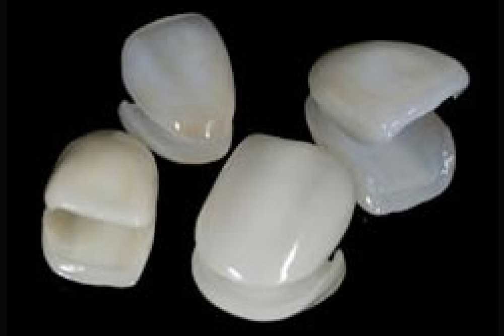 残存歯の全体を削って被せるクラウンに比べ、歯の切削量が少なく、天然歯の質感に近いセラミックの薄い膜を貼り付けて、形状や色の修復を行う方法です。しみるなどの症状も少なく審美性も高いのが特徴です。